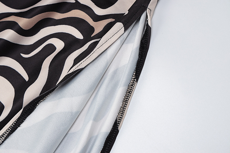 Women Clothing Summer Print Stitching Backless Sleeveless Split Dress